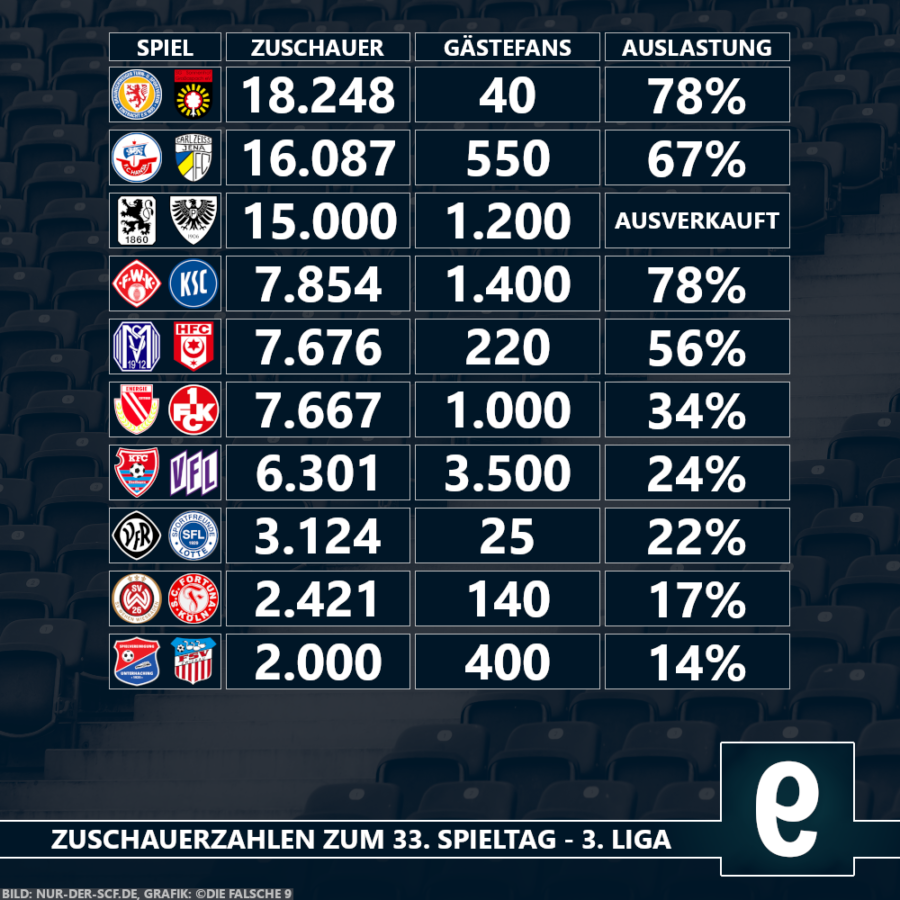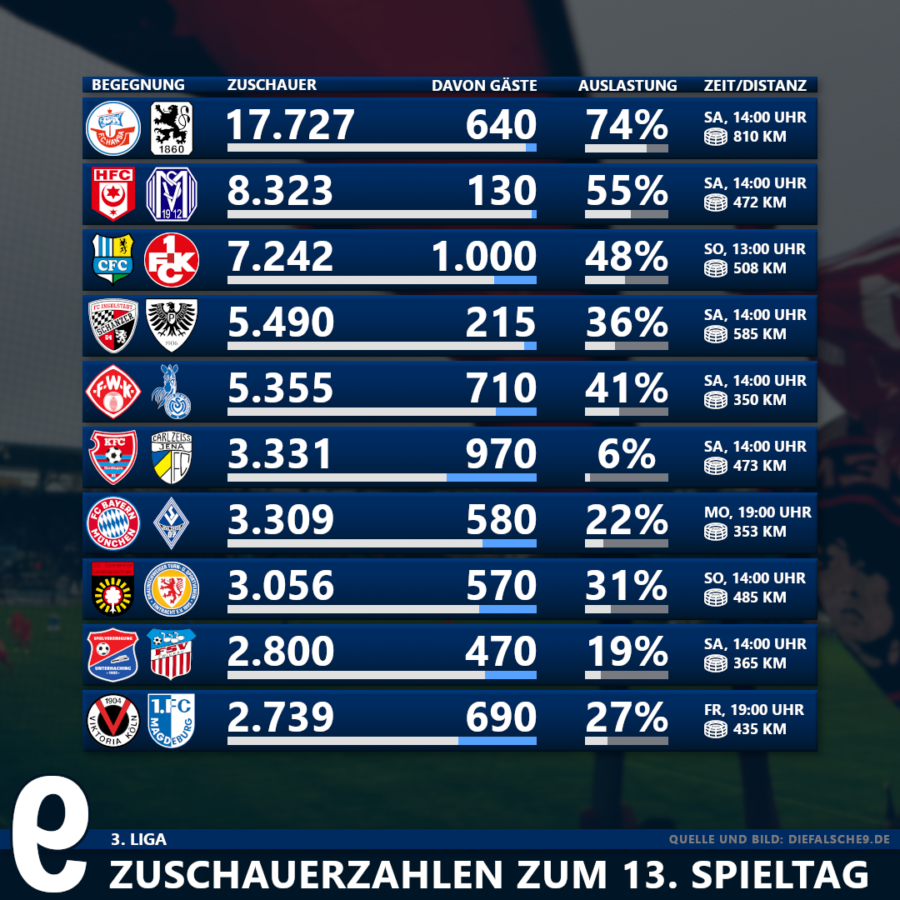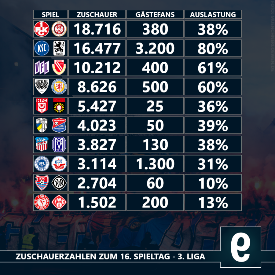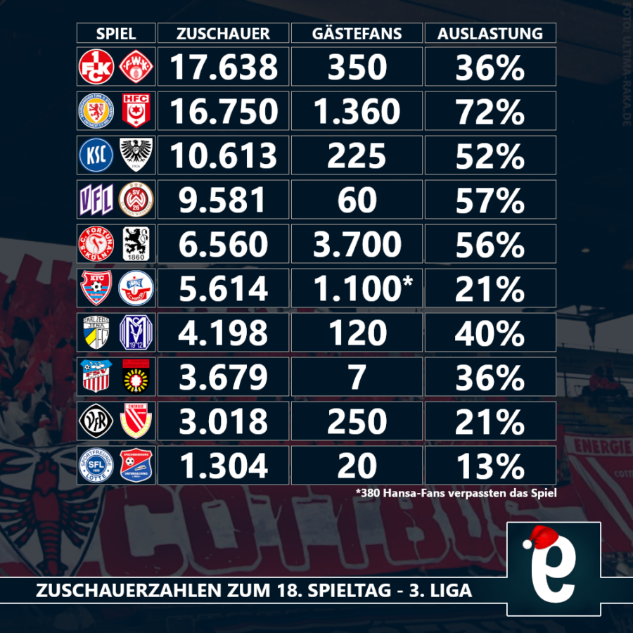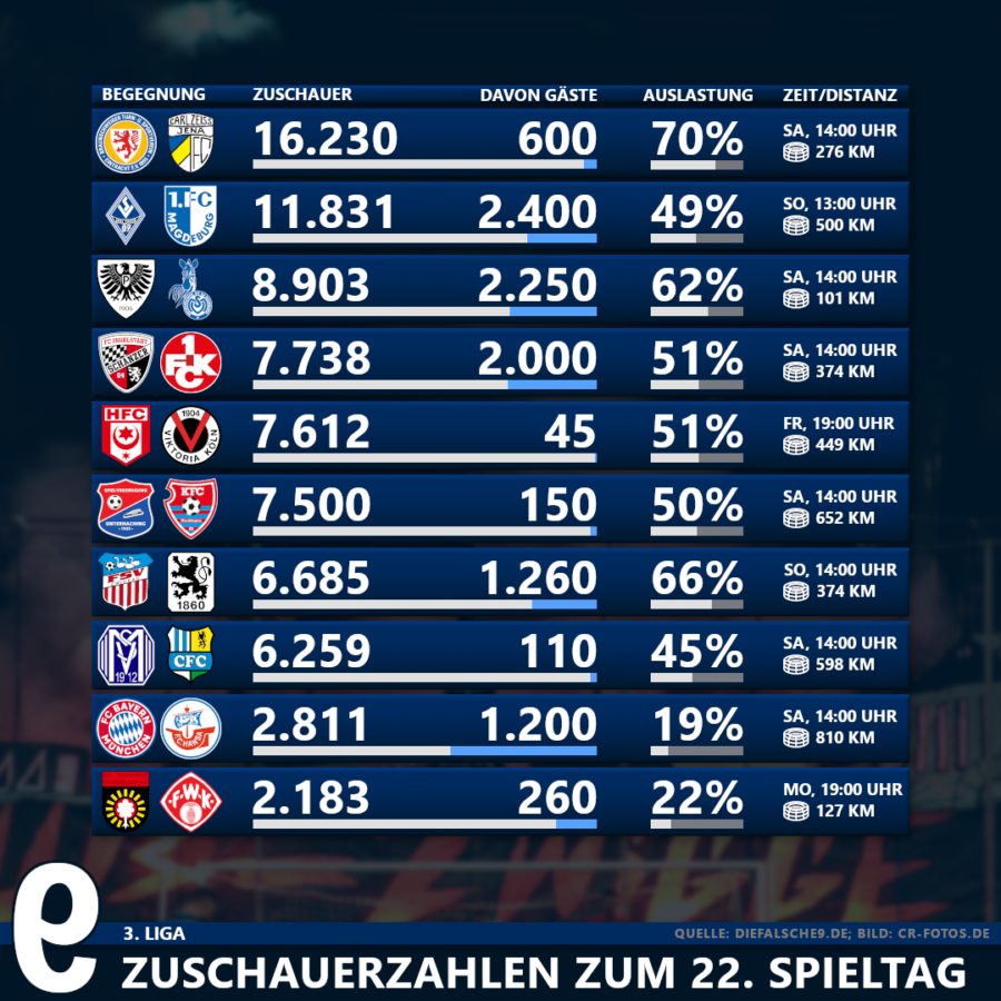 Allerdings bei der Auswärtsstatistik ist allerdings der Höchstwert beim CFC nur 560 mitgereiste Fans.
