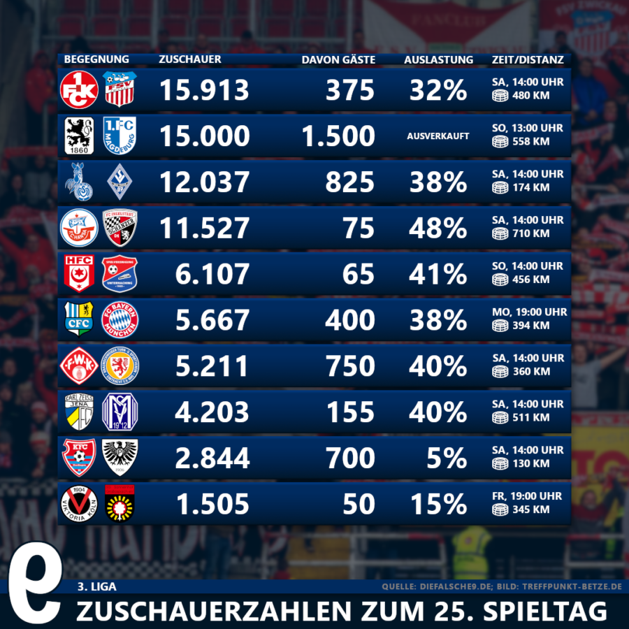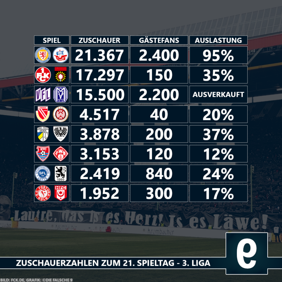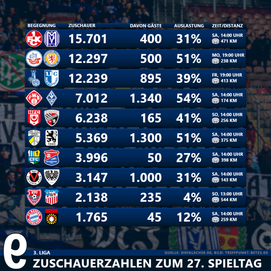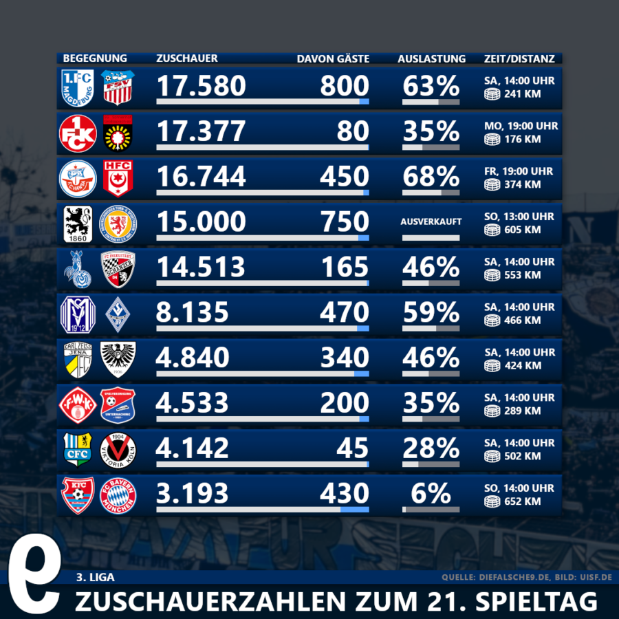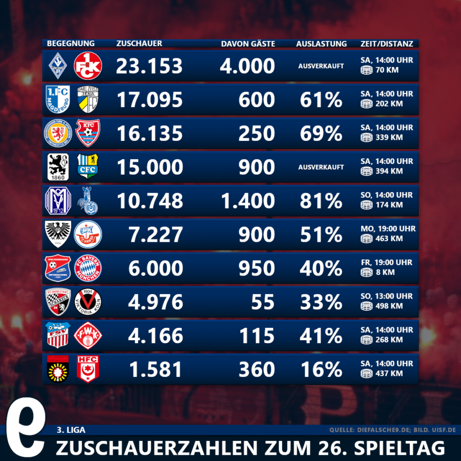 Die Zahlen beziehen wir direkt von den Vereinen. In der Regel teilt uns der Heimverein die Anzahl an verkauften Tickets für den Gästeblock mit. Zudem wird die Anzahl an Fans außerhalb des Gästeblock geschätzt.
