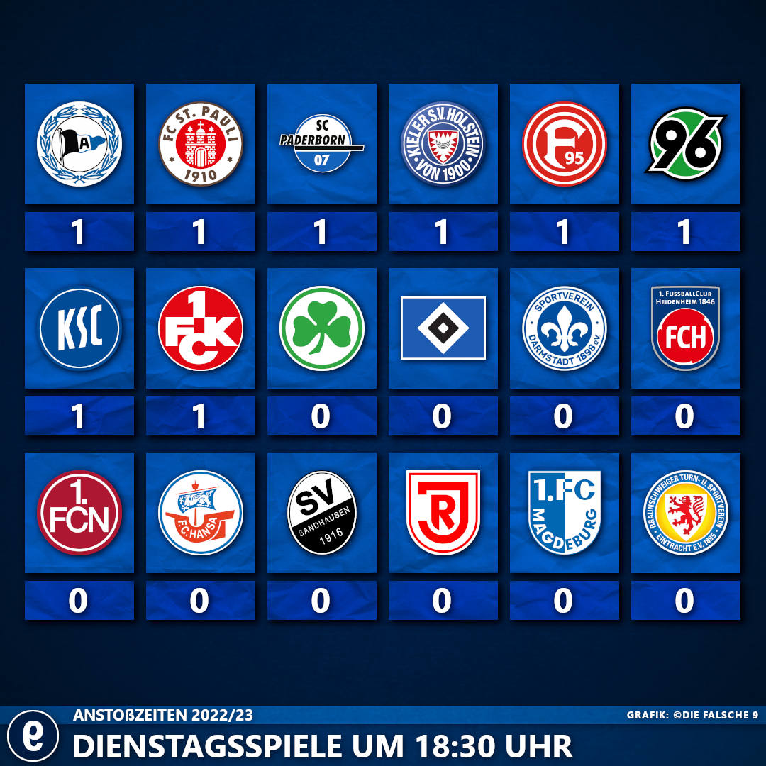 An neun verschiedenen Anstoßzeiten rollte in der Zweitliga-Saison 2022/23 der Ball. Am beliebtesten unter den Fans sind die Samstagsspiele. Wer durfte samstags oft ran und wer musste auf eher unbeliebte Anstoßzeiten ausweichen? Wir geben euch den Überblick!