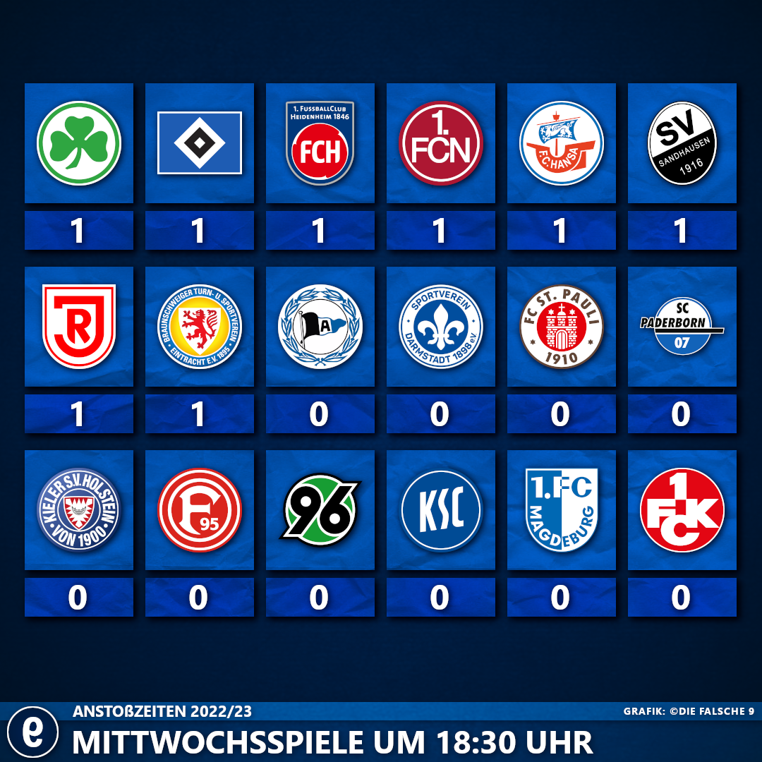 Vor der Bundesliga-Konferenz steht samstags um 13 Uhr die Zweitligakonferenz an. Eine Anstoßzeit, die nicht für Frühaufsteher und ebenso wenig für Anhänger der „Kein Bier vor Vier“-Fraktion eingeführt wurde. Mit deutlichem Abstand kicken um diese Uhrzeit besonders häufig Kiel und Regensburg, die beide die Hälfte ihrer 34 Saisonspiele samstags um 13:00 Uhr austragen. Aus geographischer Sicht vor allem für Reisende von und an die Kieler Förde eine fanfreundliche Ansetzung.