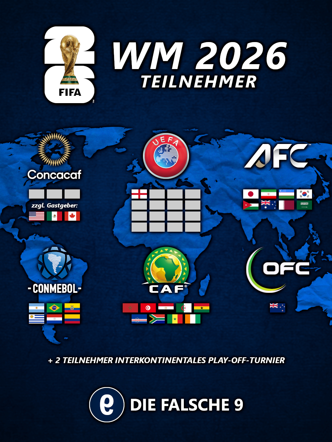 Während in Europa in diesen Tagen die Qualifikation zur WM 2026 erst startet, sind einige Kontinentalverbände bereits weit fortgeschritten. Durch die Aufstockung der Teilnehmerzahl von 32 auf 48 hat sich auch die Qualifikationsarithmetik verändert. Unter anderem hat Ozeanien erstmals einen festen Startplatz erhalten und die Gastgeber werden vom Kontingent des jeweiligen Verbands abgezogen. Zwei weitere Teilnehmer werden über ein interkontinentales Playoff-Turnier ermittelt.