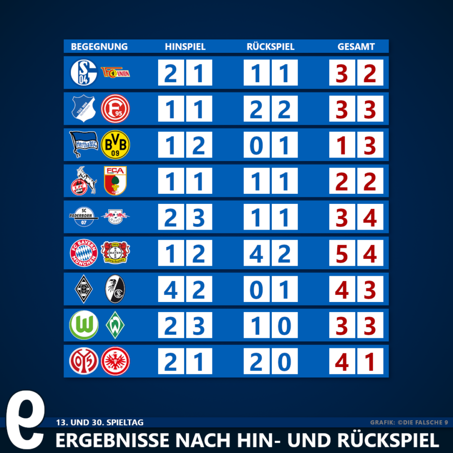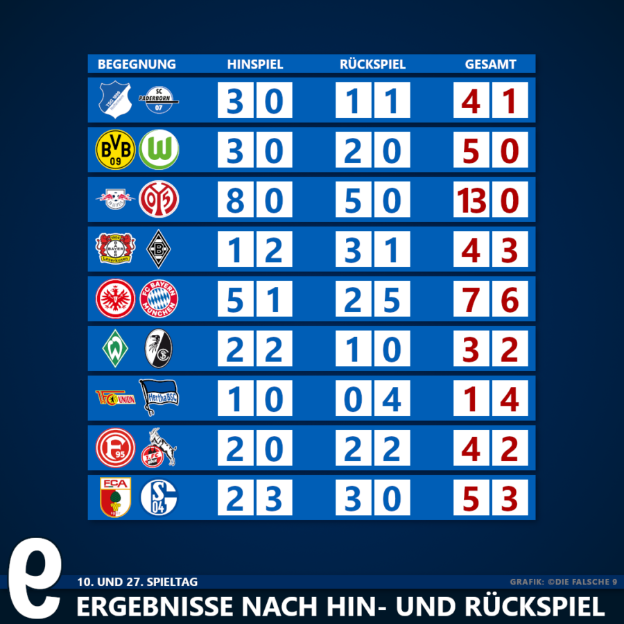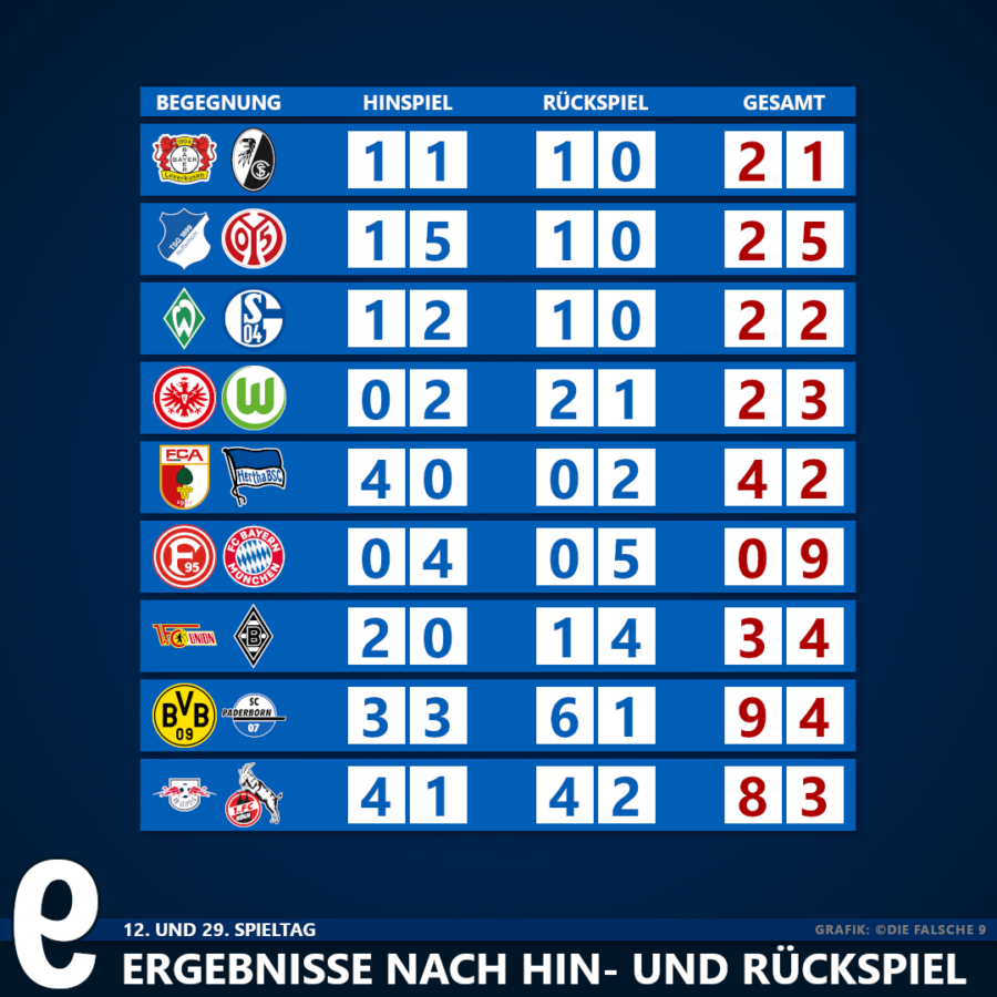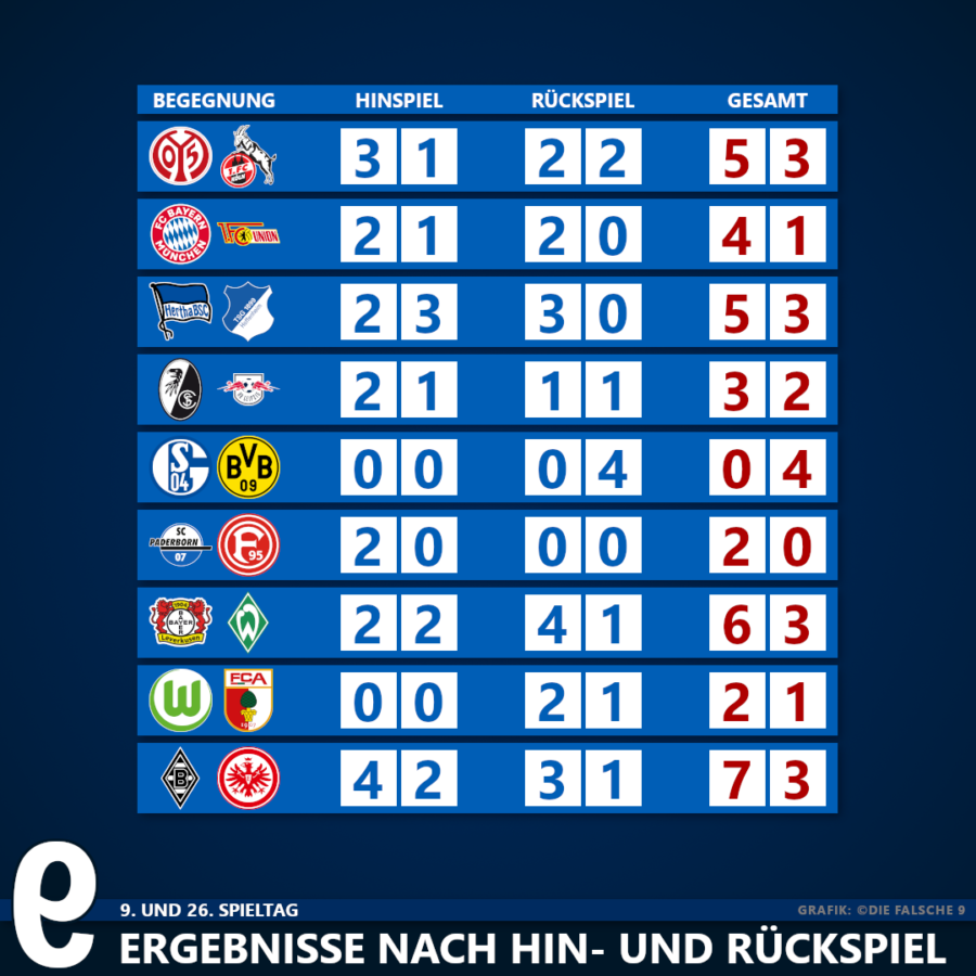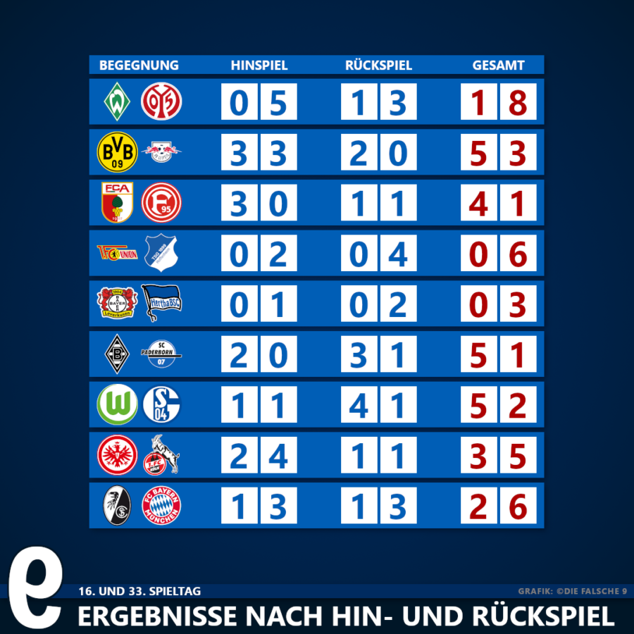 Ergebnisse nach Hin- und Rückspiel – 1. Bundesliga