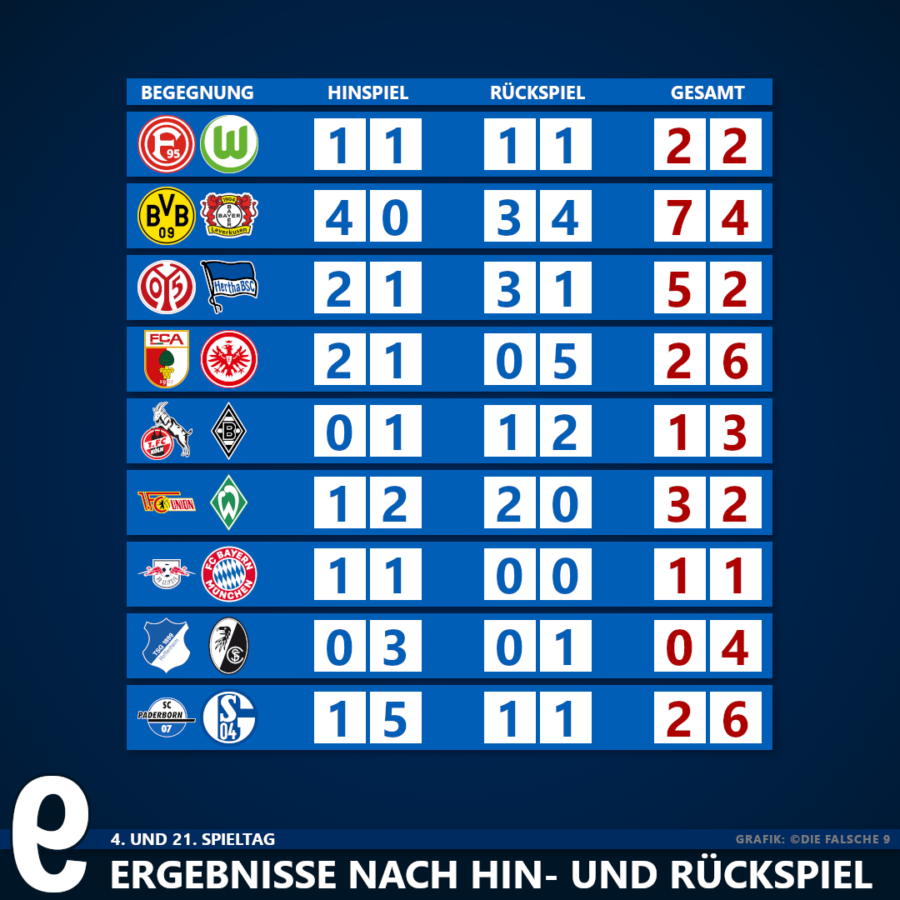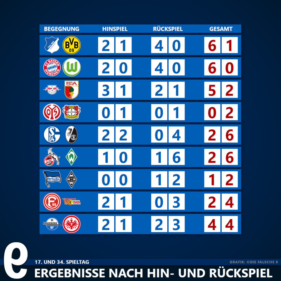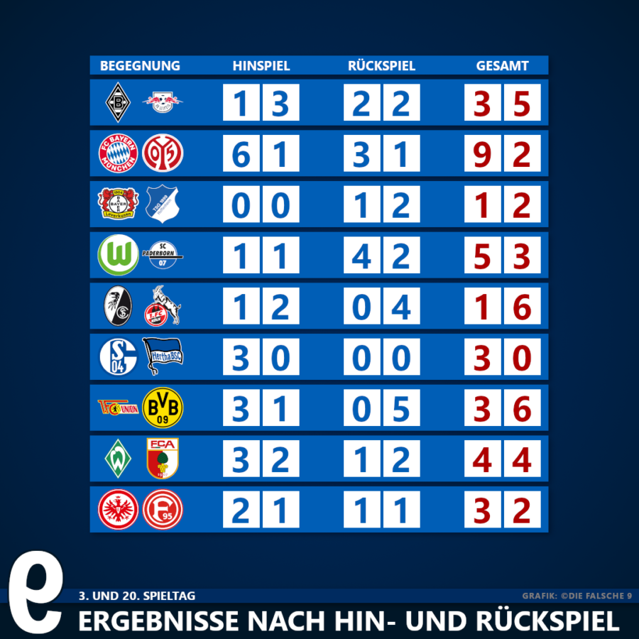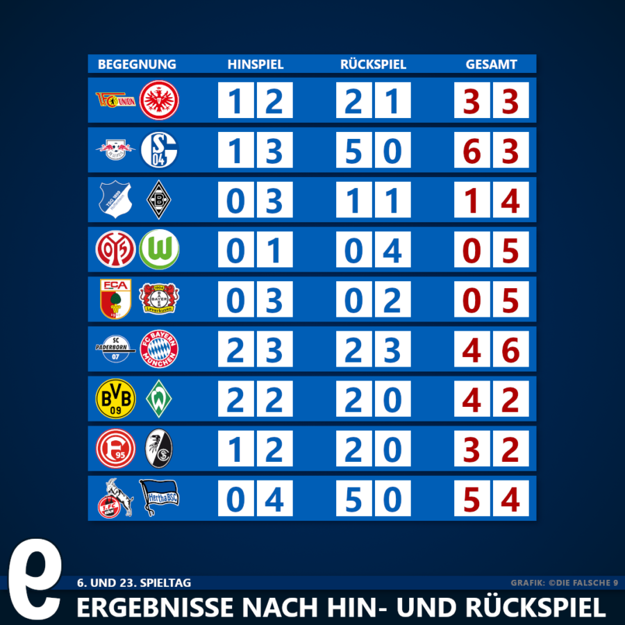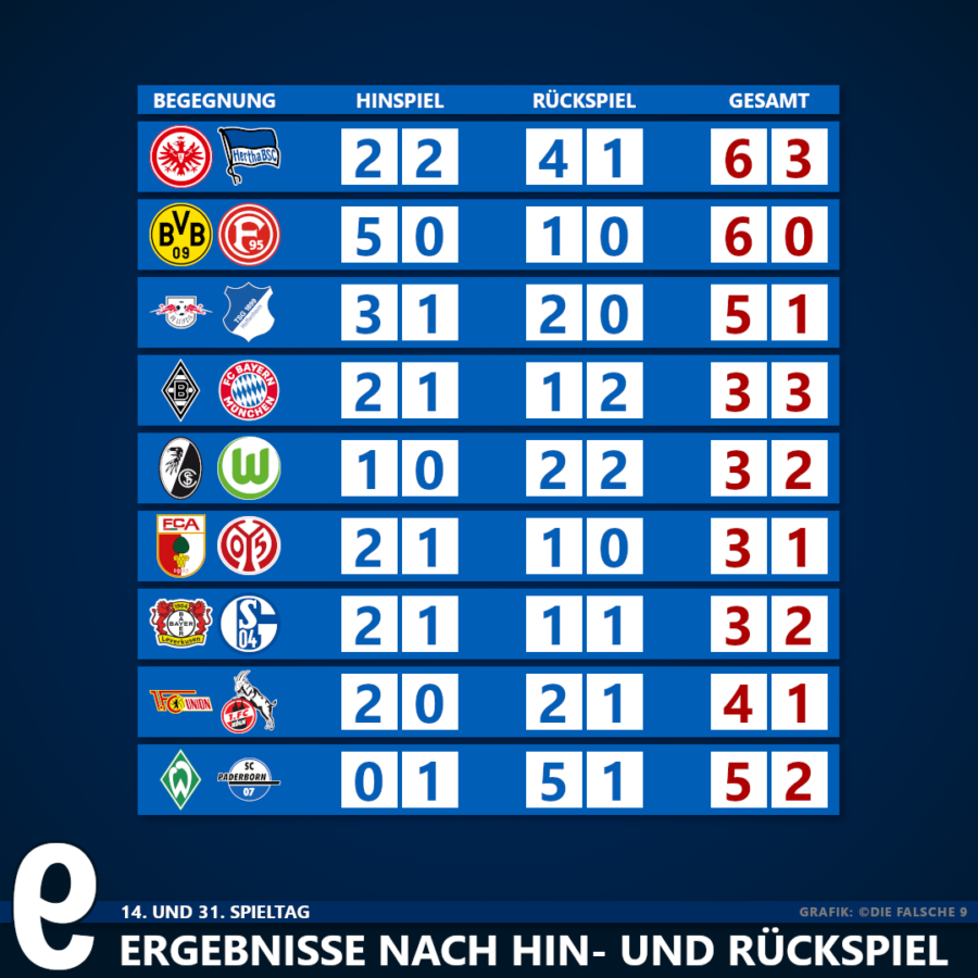 Ergebnisse nach Hin- und Rückspiel – 1. Bundesliga