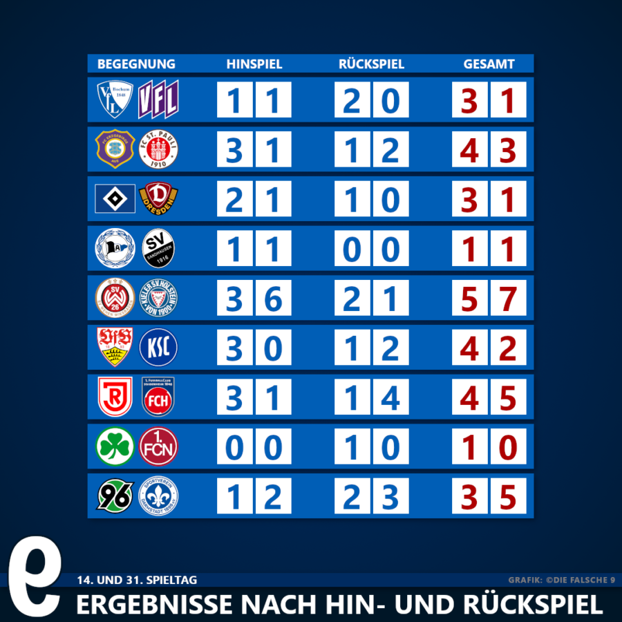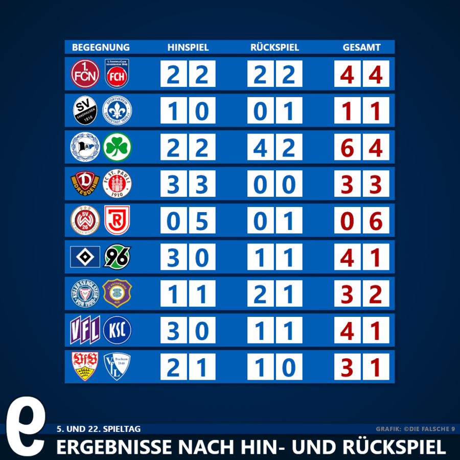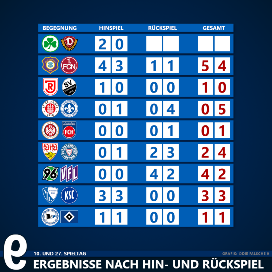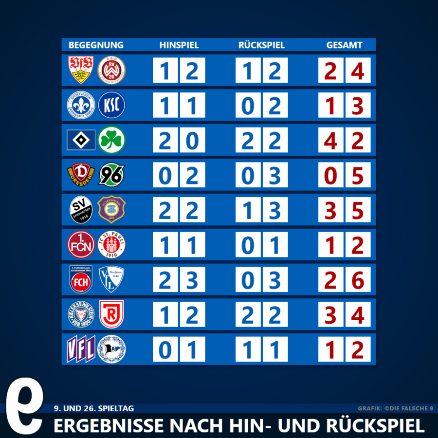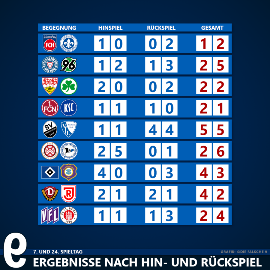 Ergebnisse nach Hin- und Rückspiel – 2. Bundesliga