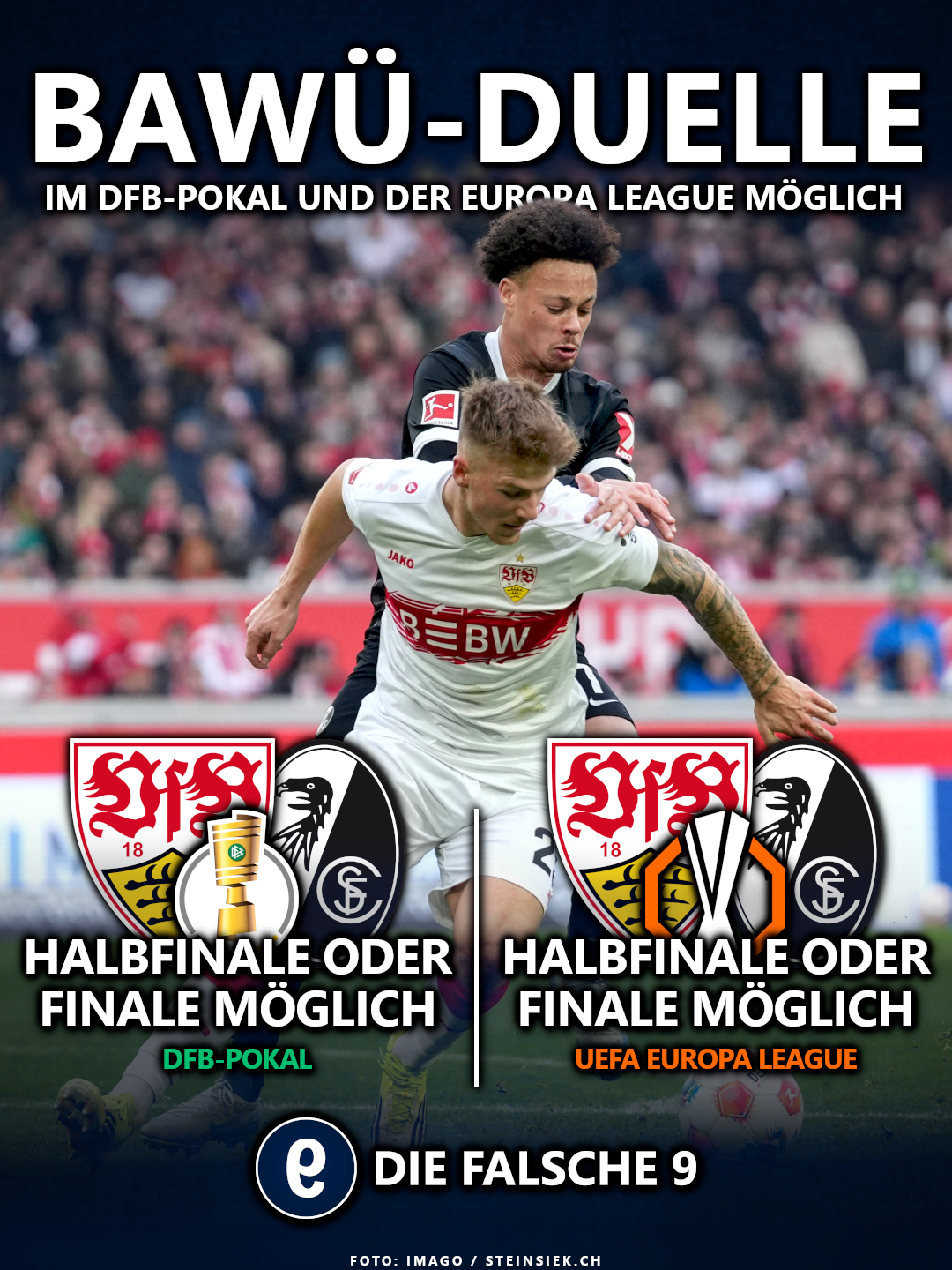 Sofern es in beiden Wettbewerben zum Halbfinal-Duell zwischen dem SC Freiburg und dem VfB Stuttgart kommen würde, würden sich die beiden Klubs in drei aufeinanderfolgenden Wochen duellieren. Zunächst stünde das DFB-Pokal-Halbfinale am 21. oder 22. April an. Anschließend würden Hin- und Rückspiel in der UEFA Europa League folgen. Das Hinspiel ist auf den 30. April terminiert, das Rückspiel auf den 7. Mai.