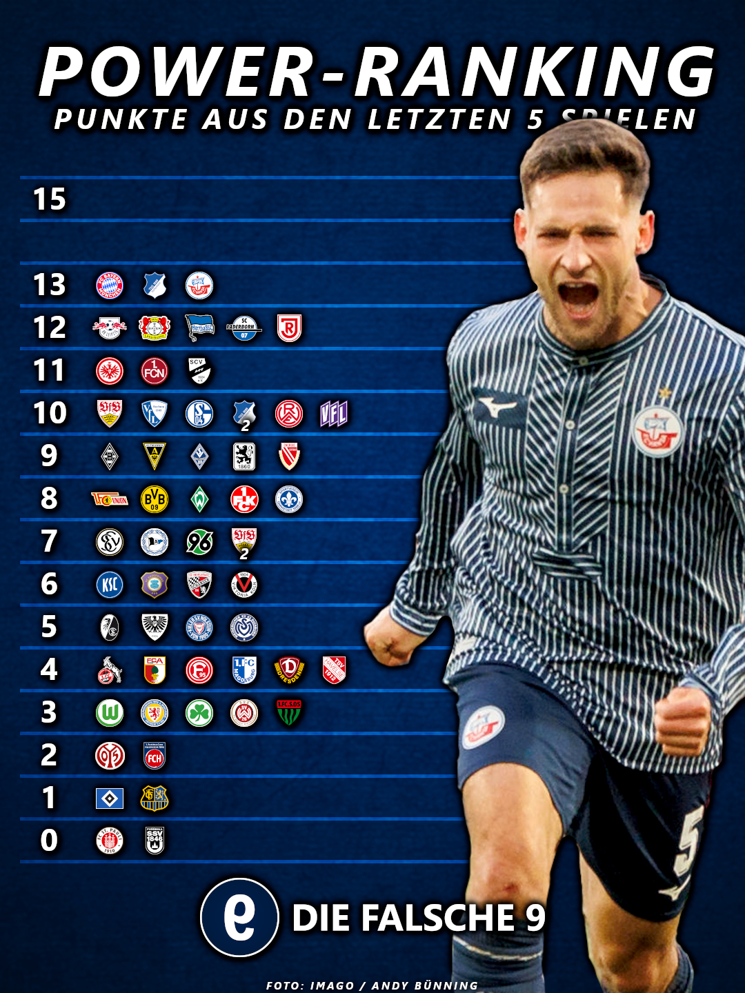 Der FC Hansa Rostock ist derzeit das formstärkste Team in Deutschland. Die Kogge führt unser Power-Ranking gemeinsam mit dem FC Bayern München und der TSG Hoffenheim an. Das Trio holte aus den letzten fünf Spielen jeweils 13 der möglichen 15 Punkte.