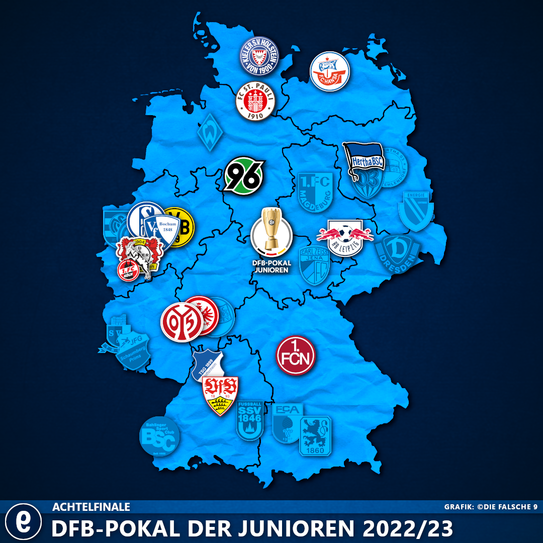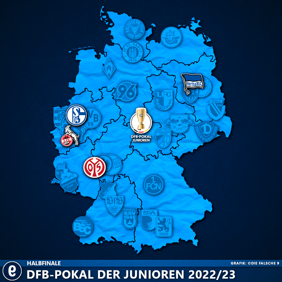 In unserem Pokalguide für den DFB-Pokal der Junioren haben wir alles wichtige zur Saison 2022/23 zusammengefasst. 32 Mannschaften wollen ins Endspiel nach Potsdam – 28 sind schon ausgeschieden.